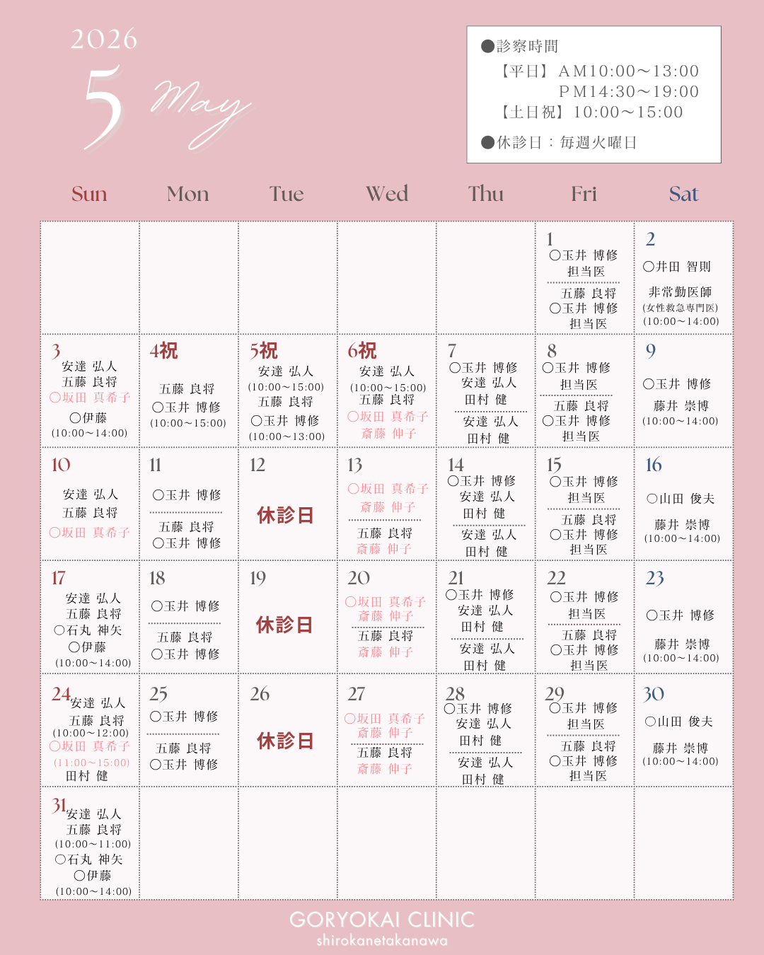 | 14:30~19:00 | 〇 | / | 〇 | 〇 | 〇 | / | / | / |